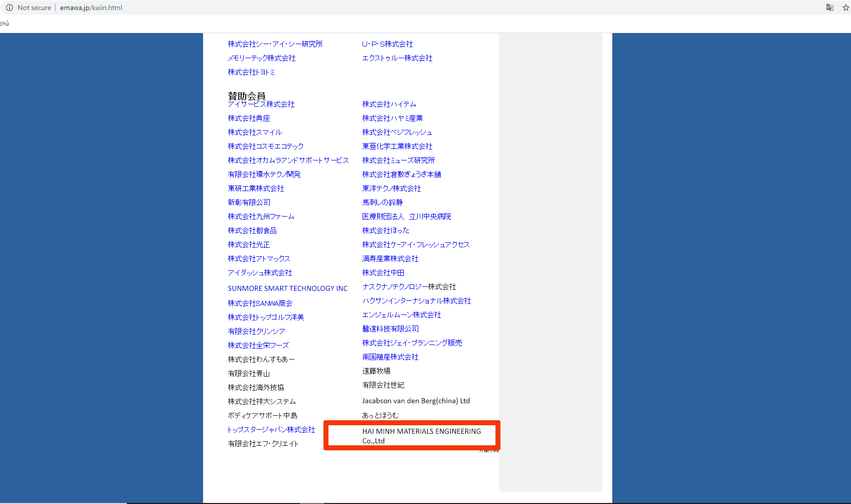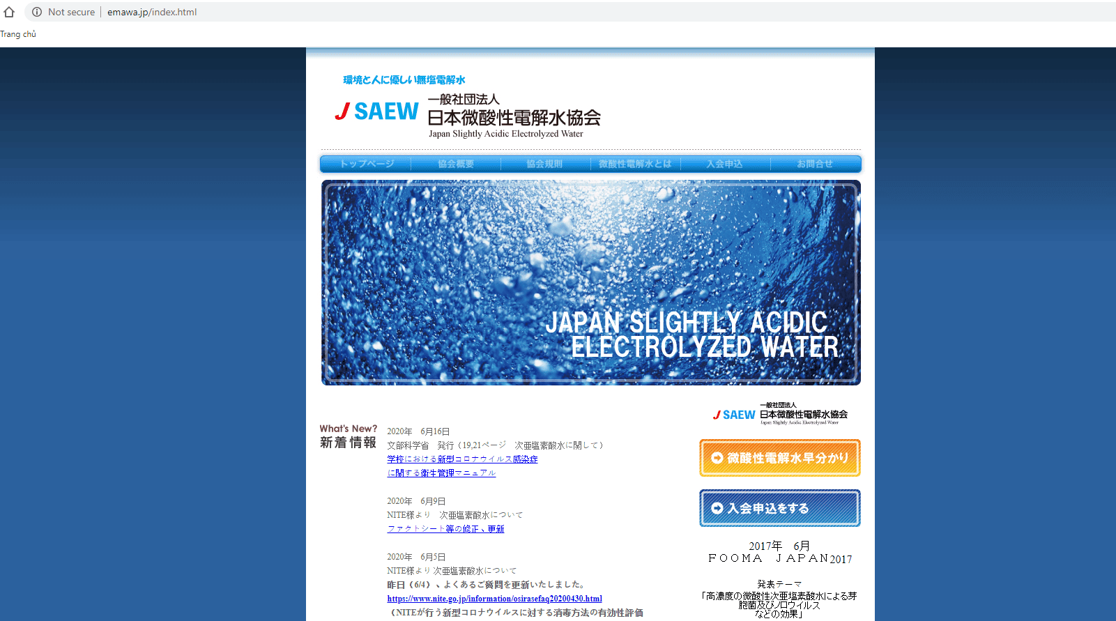 Ngày 20/6/2020 Công ty TNHH Kỹ Nghệ Vật Liệu Hải Minh là đơn vị đầu tiên tại Việt Nam chính thức trở thành thành viên của Hiệp hội nước điện phân Nhật Bản: Japan Slightly Acidic Electrolyzed Water (Nippon Bisansei Denkaisui Kyokai)