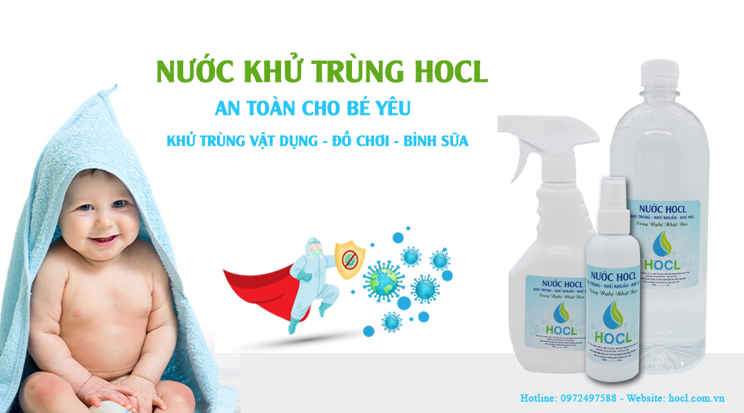 Vì nước HOCL là tuyệt đối an toàn, không gây kích ứng nên bạn hoàn toàn yên tâm có thể sử dụng chúng để diệt khuẩn, tiệt trùng các vật dụng cho em bé như: bình sữa, núm ti, đồ chơi, ngậm nướu, khăn, tã, quần áo…