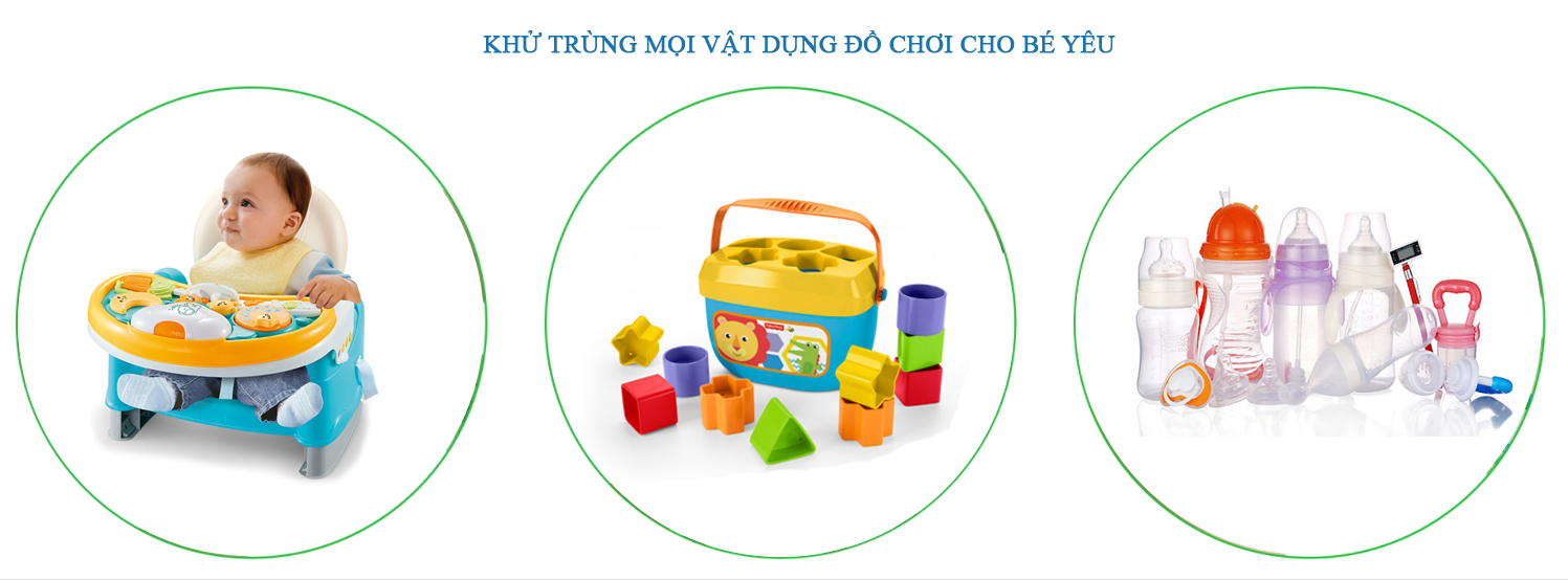 Chỉ cần xịt nước HOCL hoặc ngâm đồ chơi, vật dụng của bé vào nước HOCL từ 1-3 phút sau đó để khô tự nhiên.