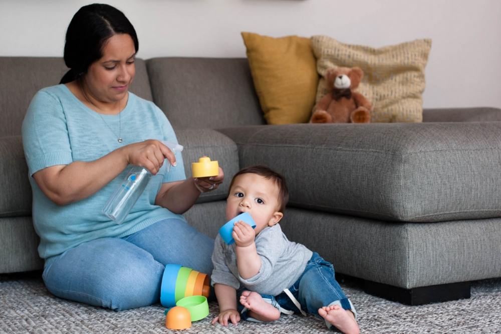- Khử trùng, diệt khuẩn đồ chơi, vật dụng của bé: bình sữa, núm ti, đồ chơi, ngậm nướu, khăn, tã, quần áo…
