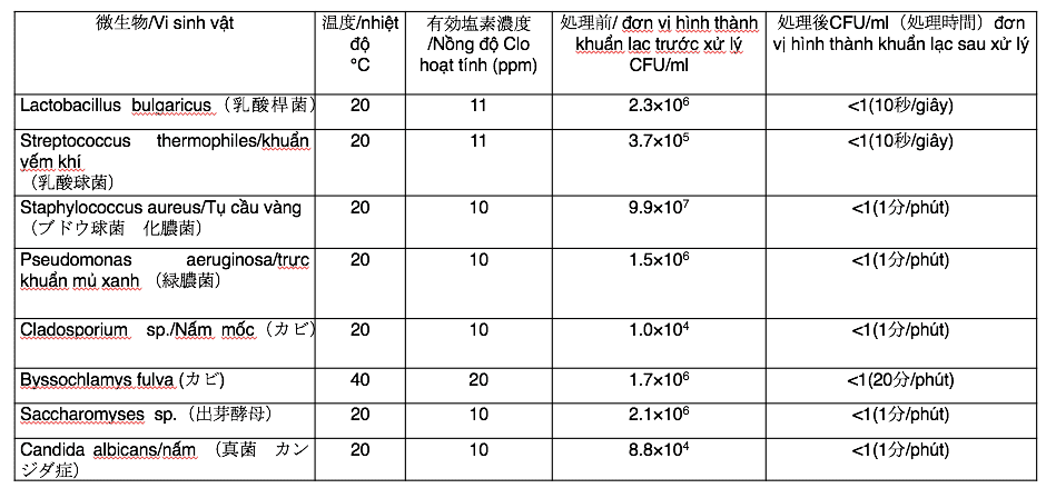 ㈱サイエンスフォーラム社刊「微生物殺菌実用データ集」より転記一部加筆/ đăng trên diễn đàn khoa học Nhật Bản Science Forum)